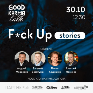 Любой гость может задать вопрос и присоединится к дискуссии. Это очень эффективный формат для обсуждения трендовых тем и выявления разных точек зрения в дружеской обстановке Good Karma. Мы объединили людей из разных сфер, но которых волнуют схожие вопросы.